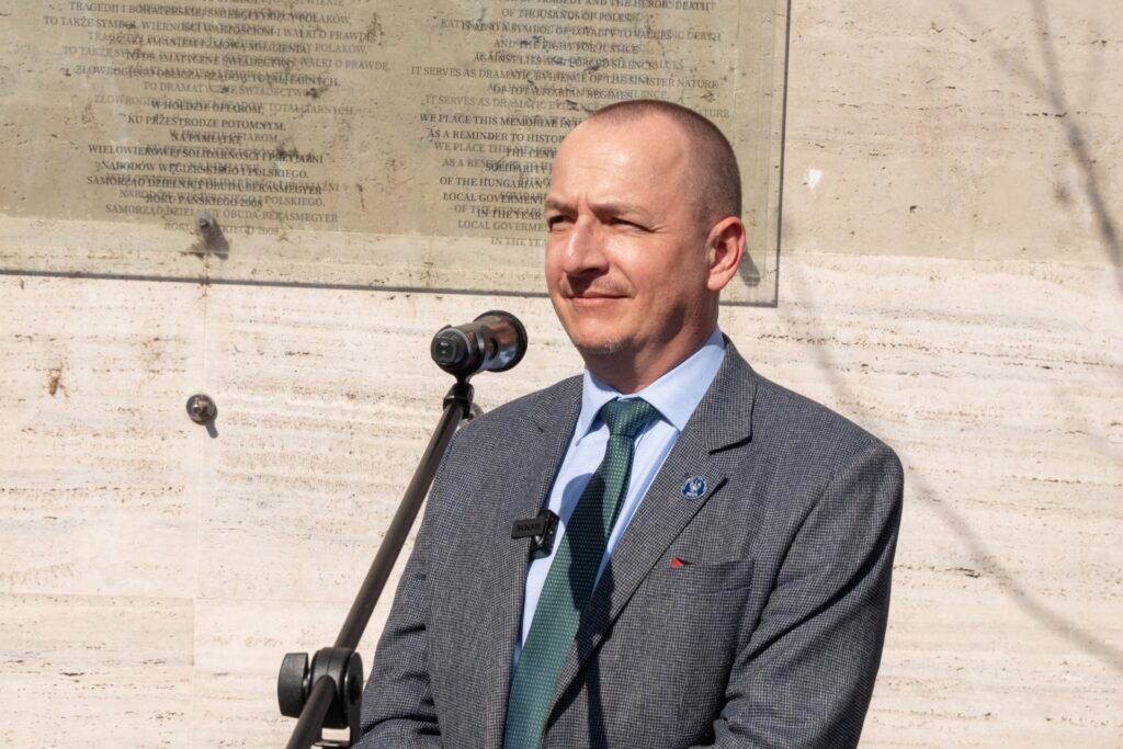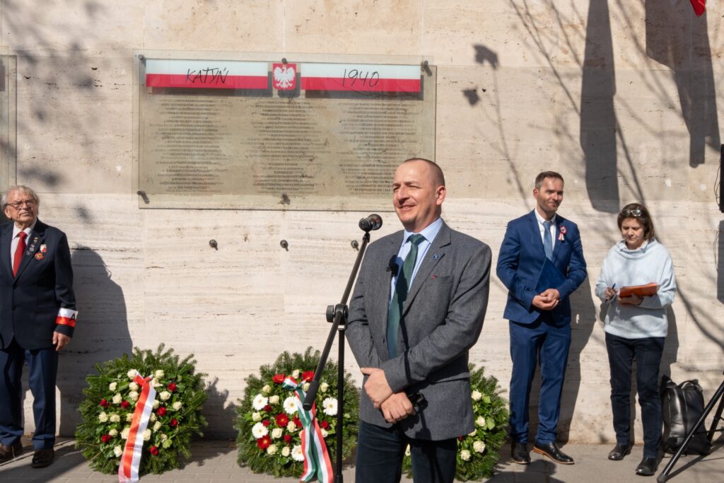 Pod pomnikiem Męczenników Katynia w Budzie wygłosił przemówienie poświęcone węgierskim ofiarom tuszowania zbrodni katyńskiej (tekst poniżej) – fragment przemówienia transmitowała TV Republika w Programie Dzisiaj w dniu 14 marca 2026 r.