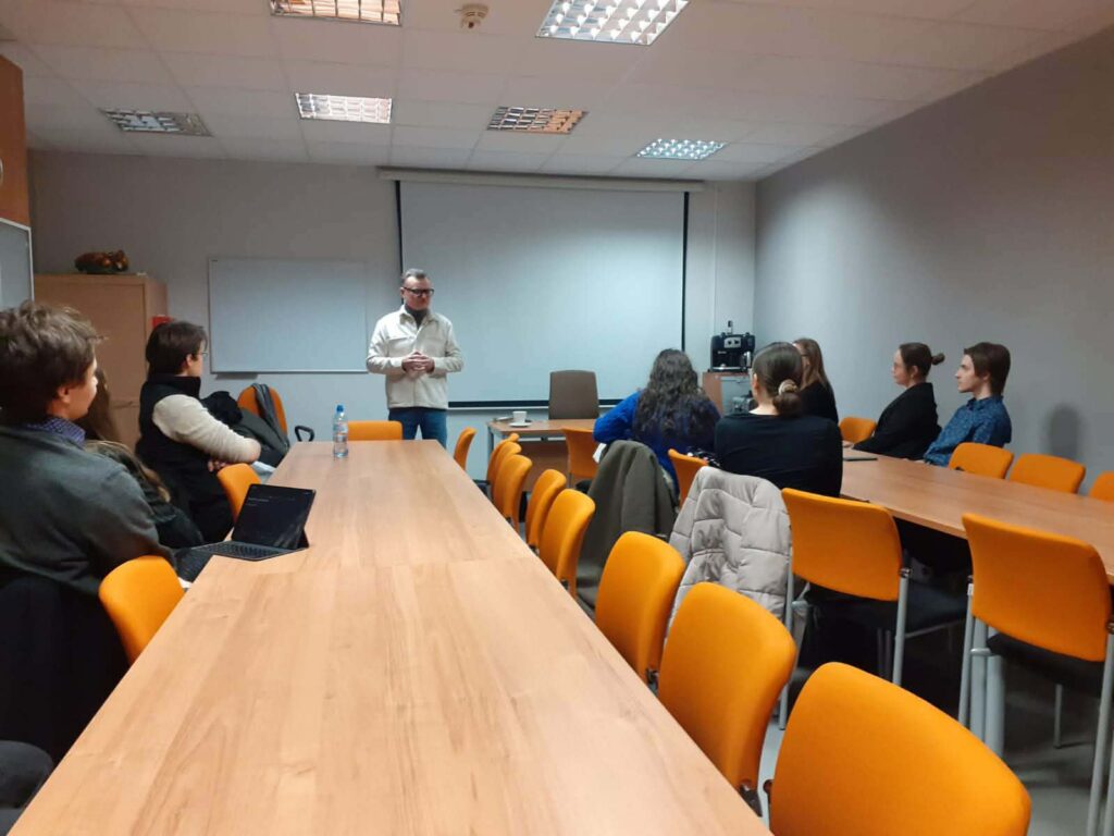 W dniu 19 stycznia 2026 r. wyklad otwarty dla studentów Koła Obrotu Prawnego z Zagranicą działającego przy Katedrze Prawa Międzynarodowego Publicznego i Europejskiego w Instytucie Prawa UEK wygłosił Prokurator Prokuratury Regionalnej w Krakowie, członek Fundacji Sprzymierzeni z GROM – dr Piotr Kosmaty. Zaproszony gość w żywiołowym i barwnym wystąpieniu przybliżył studentom problematykę współpracy transgranicznej prokuratury oraz reguły funkcjonowania zawodu prokuratora w obecnej Polsce.